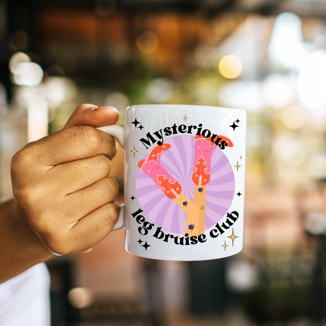 Welcome to the club you never signed up for – the Mysterious Leg Bruise Club! This funny and quirky novelty mug is perfect for anyone who constantly discovers unexplained bruises and laughs it off. Made from high-quality ceramic and available in classic white or pink two-tone, it's the ultimate gift for clumsy queens or anyone with a great sense of humour. Sip your tea, coffee, or bruise-healing potion in style!